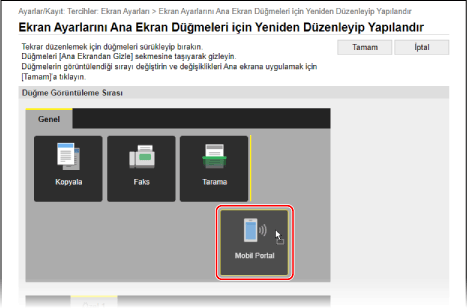 [Ana Ekran] üzerindeki düğmeleri yeniden sıralamak ve sekmeleri yeniden adlandırmak için bir bilgisayardan Uzak Kullanıcı Arabirimi'ni kullanabilirsiniz.
