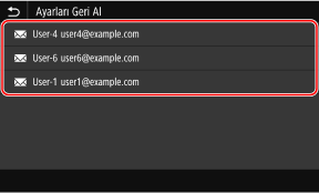Kumanda panelinin tarama veya faks ekranından TX İş Günlüğü'nü çağırarak geçmişte kullanılan hedefleri belirtebilirsiniz. Ayrıca, hedeflerle birlikte veri göndermek için kullanılan tarama ayarlarını da uygulayabilirsiniz.