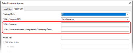 [Faks Numarasını Onayla (Yanlış Hedefe Göndermeyi Önle)] öğesine giriş yapılabildiğinde aynı faks numarasını girin.