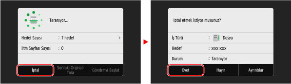 Tarama işlemini iptal etmek için ekrandaki talimatları takip edin.