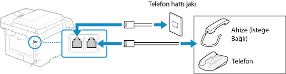 Faks işlevi içeren bir telefon bağlarken, telefondaki faksı otomatik alma ayarını devre dışı bıraktığınızdan emin olun.