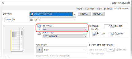 בחר בתיבת הסימון [התאם לגודל הנייר] וב- [גודל הנייר הנבחר], בחר את גודל הנייר להדפסה.
