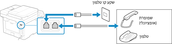 בעת חיבור טלפון עם פונקצית פקס, הקפד להשבית את הגדרת הקבלה האוטומטית של פקסים בטלפון.