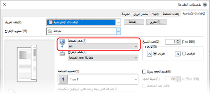 حدد مربع الاختيار [تحجيم لملاءمة حجم الورق]، وفي [حجم ورق الوجهة]، حدد حجم الورق المُراد الطباعة عليه.