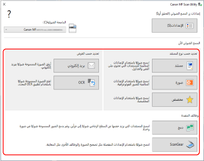 استخدام تطبيق مخصص لإجراء المسح الضوئي - MF Scan Utility