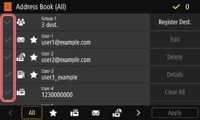در صورتی که مقصد موجود در دفترچه آدرس با عنوان "تنظیمات دلخواه" مشخص شده باشد، عملیات ویرایش یا حذف صورت گرفته در "تنظیمات دلخواه" نیز اعمال میشود. ثبت و فراخوانی تنظیمات دلخواه