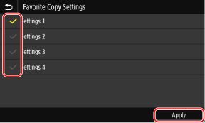 کادر انتخاب تنظیماتی را که میخواهید به دکمههای میانبر اختصاص دهید علامت بزنید و [Apply] فشار دهید.