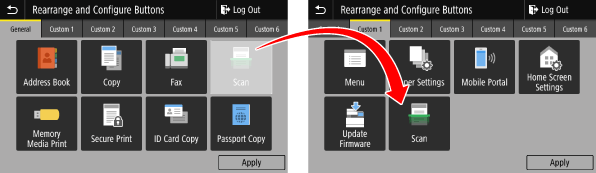 میتوانید دکمههای روی صفحه [Home] را جابجا کنید و دکمهها را به زبانههای دیگر منتقل کنید.