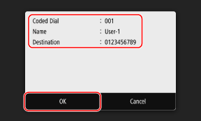 در زبانه [Specify Destination] صفحه اسکن یا فاکس، [Coded Dial] را فشار دهید.