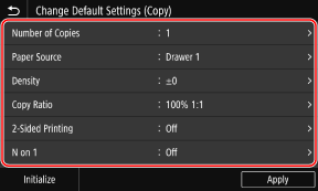 با استفاده از پنل کنترل میتوانید تنظیمات پیشفرض را برای اسکن، کپی، و سایر عملکردهای فراخوانیشده تغییر دهید.