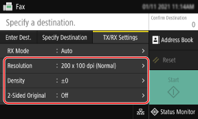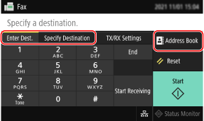 مقصد را در زبانه [Enter Dest.]، زبانه [Specify Destination]، یا [Address Book] مشخص کنید.