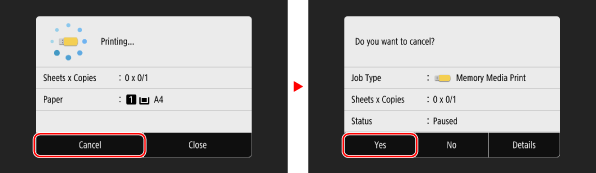برای لغو چاپ هنگام استفاده از چاپ رسانه حافظه، از پنل کنترل یا Remote UI (واسطه کاربر از راه دور) استفاده کنید.