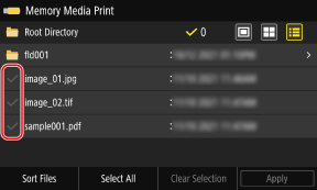 صفحه مربوط به انتخاب فایلها در دستگاه حافظه USB