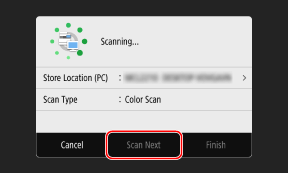 برای ادامه روند اسکن کردن اسناد اصلی، آنها را روی صفحه شیشهای قرار دهید و [Scan Next] را فشار دهید.