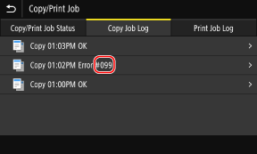 چنانچه نتوان چاپ کرد، دادههای اسکن شده یا فاکس ارسال یا دریافت نشوند، یا هر خطای دیگری رخ دهد، کد خطایی (عددی سهرقمی با "#" در ابتدا) در گزارش کار نمایش داده میشود.