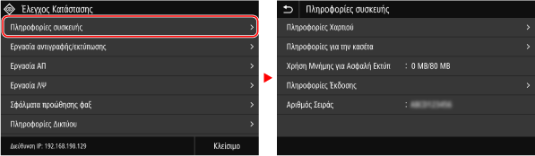 Όταν πατάτε ένα όνομα στοιχείου ή ένα κουμπί, μπορείτε να επιλέξετε το στοιχείο. Εμφανίζεται η επιλεγμένη οθόνη ή εκτελείται η επιλεγμένη λειτουργία.