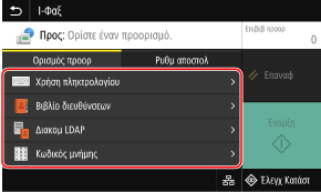 Εάν κατά την αποστολή ο προορισμός περιορίζεται λόγω των ρυθμίσεων ελέγχου ταυτότητας για τη λειτουργία αποστολής, δεν μπορείτε να καθορίστε άλλον προορισμό. Για λεπτομέρειες, επικοινωνήστε με τον διαχειριστή.