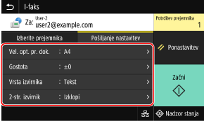 Če je prejemnik pri pošiljanju omejen zaradi nastavitev za overovitev za funkcijo pošiljanja, ne morete določiti drugega prejemnika. Za podrobnosti se obrnite na skrbnika.