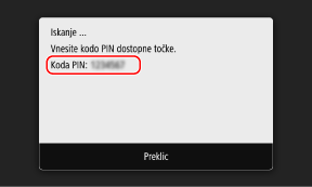 Ko je prikazan ta zaslon, morate registrirati način WPS s kodo PIN za usmerjevalnik za brezžični LAN v roku 10 minut.
