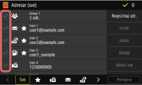 Ako je odredište u adresaru uvršteno u „Omiljene postavke”, radnja uređivanja ili brisanja primjenjuje se i na „Omiljene postavke”. Registriranje i primjena omiljenih postavki