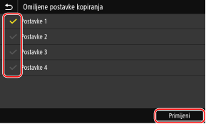 Potvrdite okvire za postavke koje želite spremiti kao gumbe prečaca pa pritisnite [Primijeni].