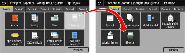 Gumbi na zaslonu [Početni zaslon] mogu se prerasporediti i premjestiti na drugu karticu.