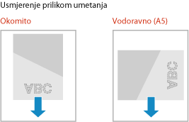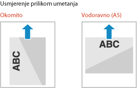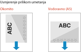 Pri umetanju papira s logotipom obratite pozornost na usmjerenje i na to koja je strana okrenuta prema gore.