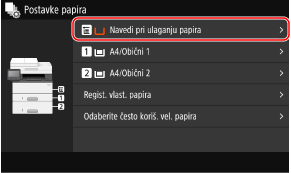 Ako u višenamjenskoj ladici uvijek upotrebljavate isti papir, možete registrirati format i vrstu tog papira. Time se sprječava prikazivanje zaslona s postavkama papira da ne biste morali konfigurirati postavke.