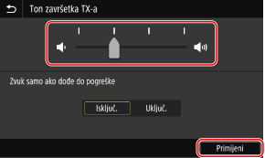 Prilagodite glasnoću zvuka kojim vas se obavještava da je slanje faksa dovršeno.