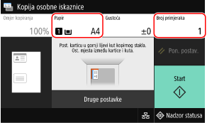 Na upravljačkoj ploči pritisnite [Kopija osobne iskaznice] na zaslonu [Početni zaslon].