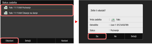 Ako se prikaže zaslon s popisom zadataka, odaberite zadatak koji želite otkazati i pritisnite [Odustani]
