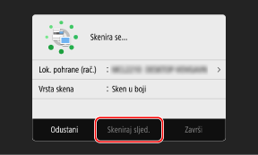 Da biste nastavili sa skeniranjem izvornika, postavite ih na kopirno staklo i pritisnite [Skeniraj sljed.].