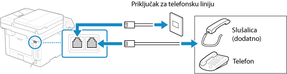 Priključite priloženi telefonski kabel u utičnicu za telefonsku liniju na uređaju (LINE) i u zidnu utičnicu za telefonsku liniju.