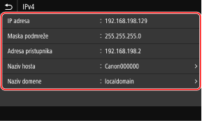 Možete provjeriti postavku IP adrese postavljene na uređaju, kao što su IPv4 adresa i IPv6 adresa.