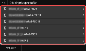 Potražite usmjerivač za bežični LAN (pristupnu točku) na koji se želite spojiti i unesite mrežni ključ.