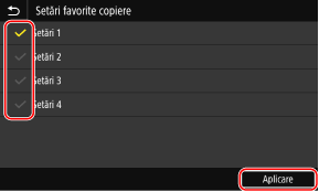 Bifați casetele de selectare ale setărilor pe care doriți să le alocați ca butoane pentru comenzi rapide și apăsați pe [Aplicare].