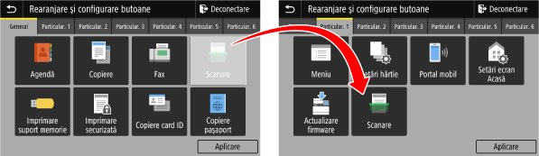 Puteți rearanja butoanele de pe ecranul [Pornire] și puteți muta butoanele în alte file.