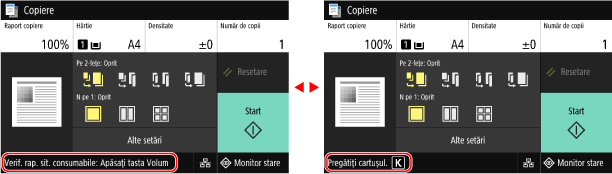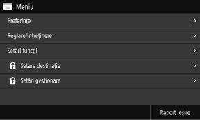 Modificarea afișajului de pe ecranPuteți modifica afișajul de pe panoul de control, de exemplu prin modificarea limbii de afișare și a unităților, respectiv prin afișarea sau ascunderea mesajelor. [Setări afişaj]
