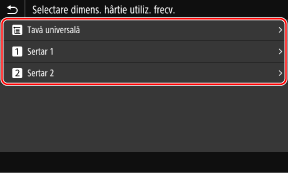 Se afișează ecranul [Selectare dimens. hârtie utiliz. frecv.].