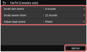 Când [Fax/Tel (Comutare auto)] este activat pentru a determina dacă apelul este un fax, puteți configura și setări privind durata soneriei.