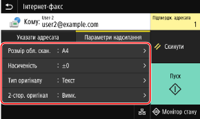 На вкладці [Указати адресата] зазначте адресу призначення. Зазначення адресатів