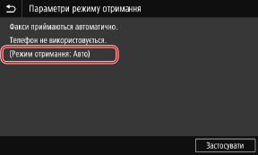 Після появи повідомлення [Параметри сконфігуровано.] відобразиться екран [Параметри режиму отримання].