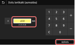 Zehaztu doikuntzaren zabalera balio positibo baten bidez paperean behera doitzeko, edo balio negatibo baten bidez paperean gora doitzeko.