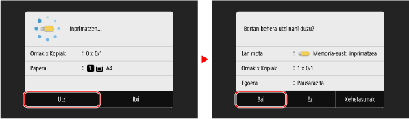 Jarraitu pantailaren argibideei inprimatzea bertan behera uzteko.