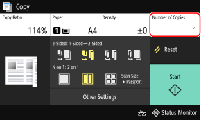 Press [Number of Copies], use the numeric keys to enter the number of copies, and then press [Close].