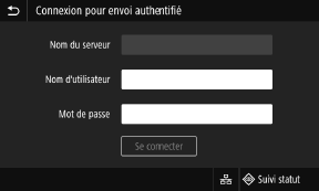 Lorsque l'envoi authentifié (authentification du serveur LDAP) est paramétré, l'écran de connexion pour l'envoi authentifié s'affiche lors des opérations de numérisation et de télécopie. Saisissez le nom d'utilisateur et le mot de passe gérés avec le serveur LDAP pour vous connecter.