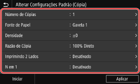 Você pode alterar as configurações padrão de digitalização, cópia e outras funções acessadas no painel de controle.