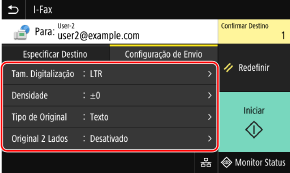 Ao enviar, se o destino de envio for restrito devido às Configurações de Autenticação da Função de Envio, você não poderá especificar outro destino. Para obter detalhes, entre em contato com o administrador.