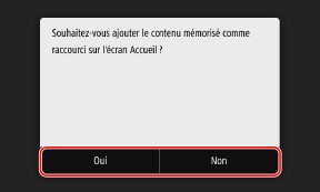 Lorsque vous sélectionnez [Non], le paramétrage favori est enregistré mais un bouton de raccourci n'est pas ajouté. Vous pouvez ajouter un bouton de raccourci à l'écran [Accueil] ultérieurement.