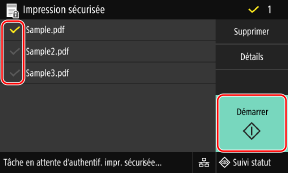 Cochez la case des données sécurisées à imprimer et appuyez sur [Démarrer].